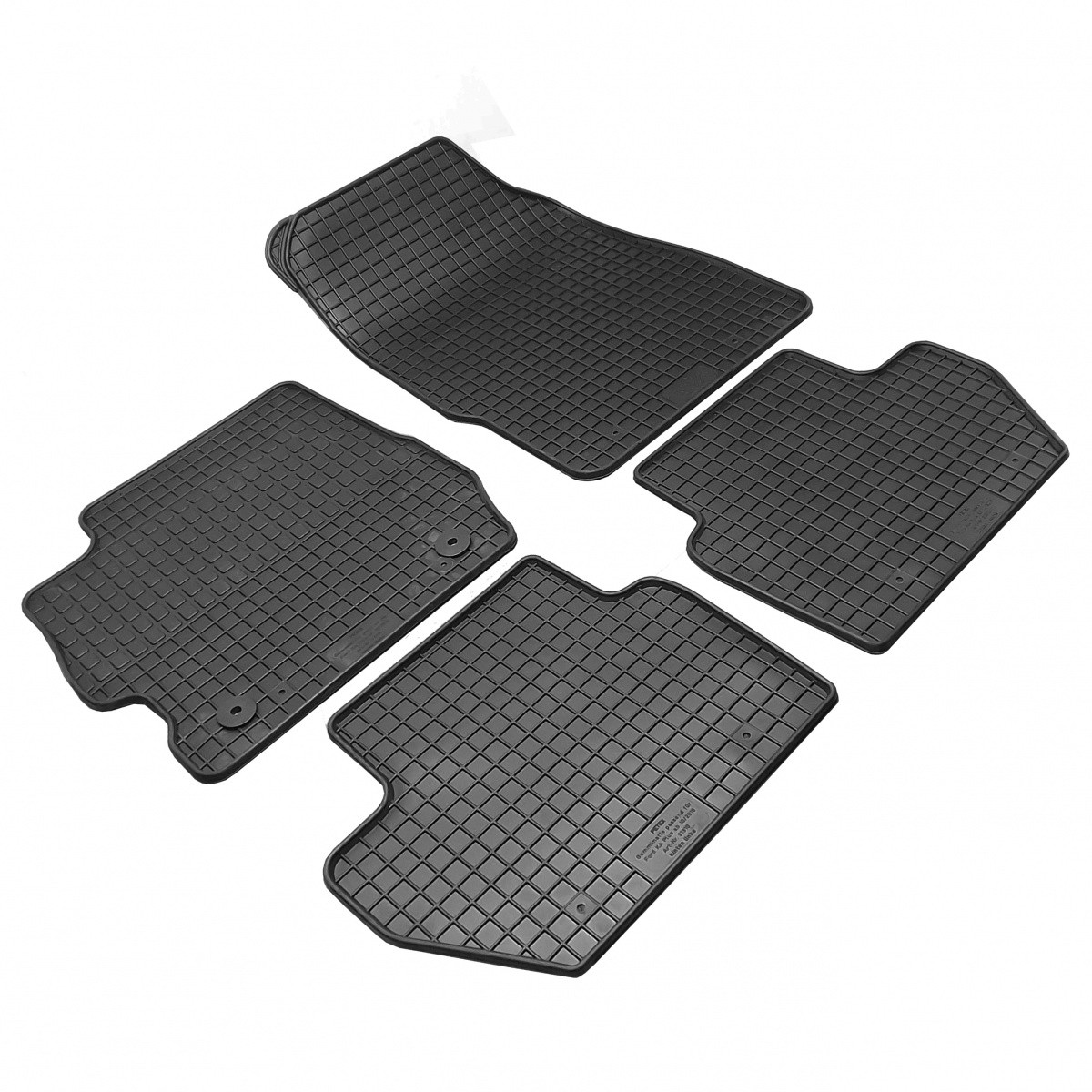 Kvalitní gumové autokoberce pro vůz Ford Ka+, které mají tradiční (čtverečkovaný) design, díky kterému nedochází k přelévání vody nebo tajícího sněhu po kobercích. Okraj autokoberců je přibližně 1 cm vysoký.
