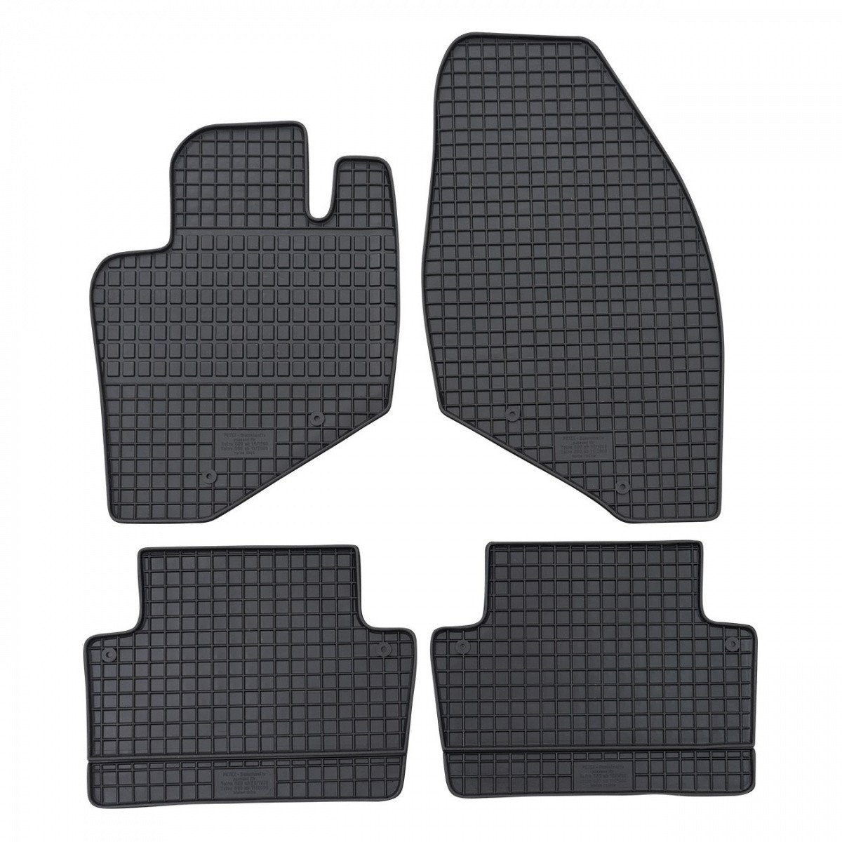 Kvalitní gumové autokoberce pro vůz Volvo V70, které mají tradiční (čtverečkovaný) design, díky kterému nedochází k přelévání vody nebo tajícího sněhu po kobercích. Okraj autokoberců je přibližně 1 cm vysoký.